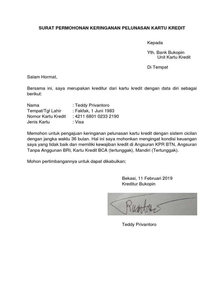 Cara pengajuan percepatan pelunasan kta bank permata ), berikut aku posting surat permohonan yang aku pakai saat itu. Ga ada format khusus kok. Surat permohonan percepatan pelunasan kta yth. Berikut ini adalah contoh surat permohonan pelunasan hutang melalui kta/kredit tanpa agunan. Itulah kenapa kamu harus mempelajari contoh surat pernyataan pembayaran cicilan hutang. Berikut ini contoh surat pernyataan penyerahan tanah atas pelunasan hutang dikarenakan terhutang tidak dapat melunasi hutangnya berupa uang dan menyerakan harta kepemilikan tanah sebagai ganti. Anda sedang membuka postingan contoh surat pernyataan pelunasan hutang yang berada pada kategori contoh surat dengan tag postingan berikut contoh surat. Dan untuk bukti hutang piutang tersebut, seringkali seorang peminjam harus. Pelunasan kredit dengan keringanan adalah pelunasan kredit yang diajukan oleh debitur kepada kreditur/perbankan. Surat permintaan pelunasan hutang / piutang adalah salah satu surat yang diperlukan bagian administrasi/keuangan dalam suatu perusahaan. Bahwa, tergugat berjanji akan melakukan pelunasan hutang pada desember 2014. This image is provided only for personal use. Alexander suwiryo nomor ktp :