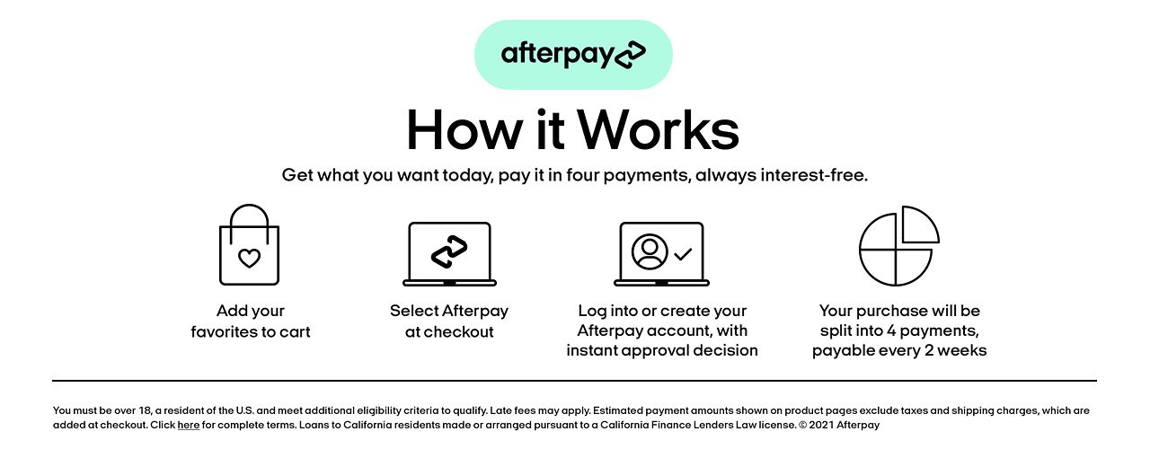 Afterpay is fully integrated with all your favorite stores.